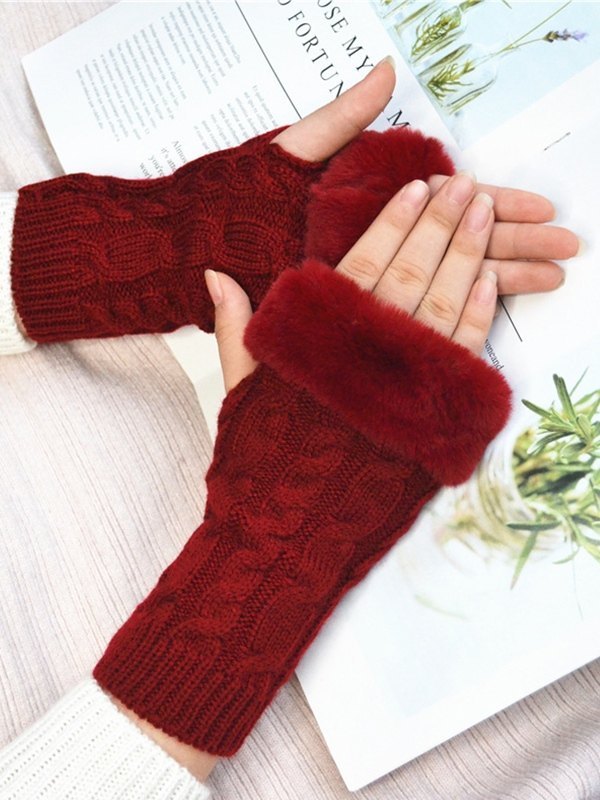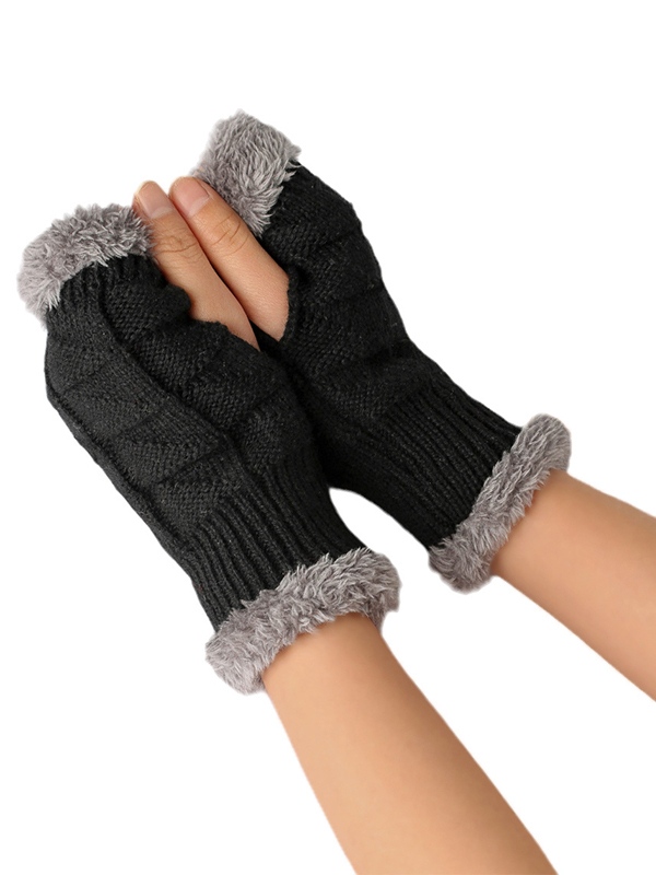 Fingerlose Strickhandschuhe mit dickem, warmem Fleecefutter