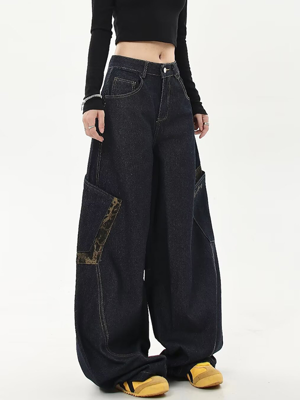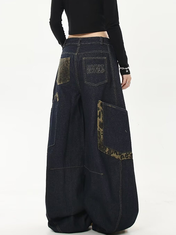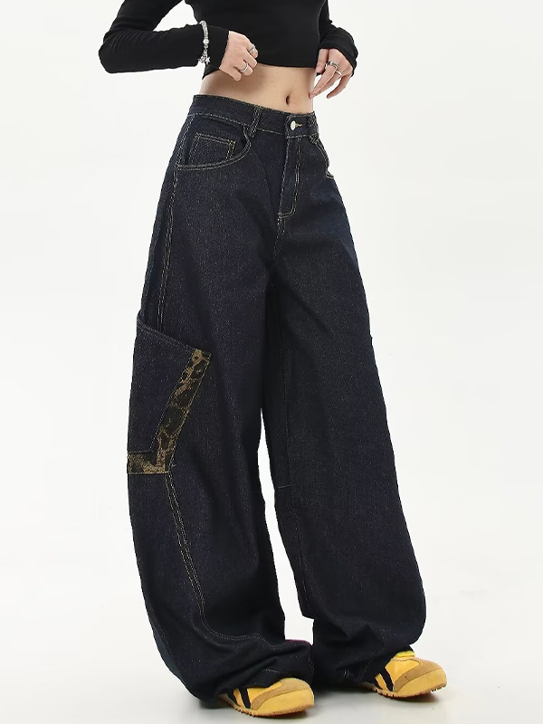 American Retro Boyfriendjeans mit Leopardenmuster und Nähten
