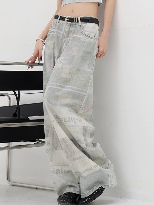 Boyfriendjeans im Zeitungsprint-Design