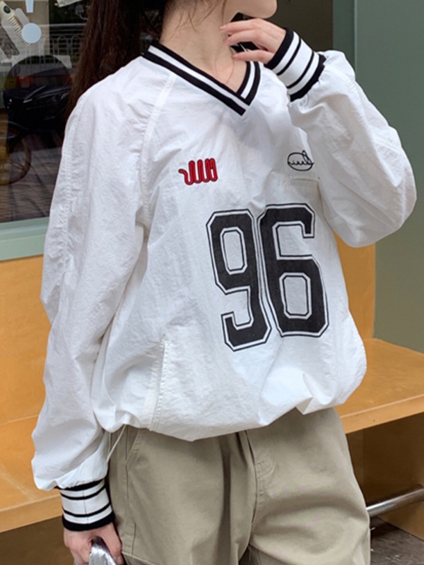 Dünnes Sweatshirt mit V-Ausschnitt und Zahlen-Print