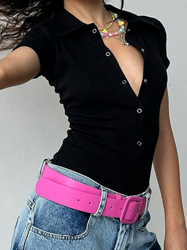 Einfarbiger, kurzärmliger Strampler mit Revers