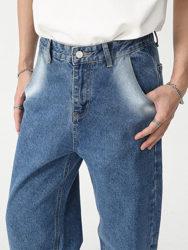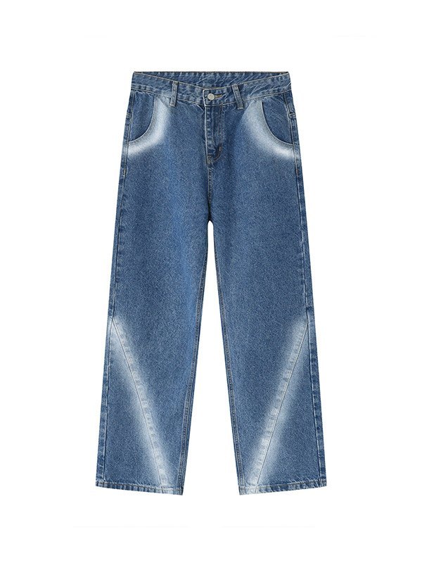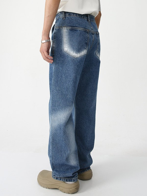 Beschreibung: Diese klassische Retro-Denim-Jeans für Herren ist einfach und vielseitig zu tragen Stil. Sie haben Batik-Spray-Effekte am Bein, mehrere Gürtelschlaufen, funktionelle Jeanstaschen und ein Metallknopf-Reißverschluss-Design.