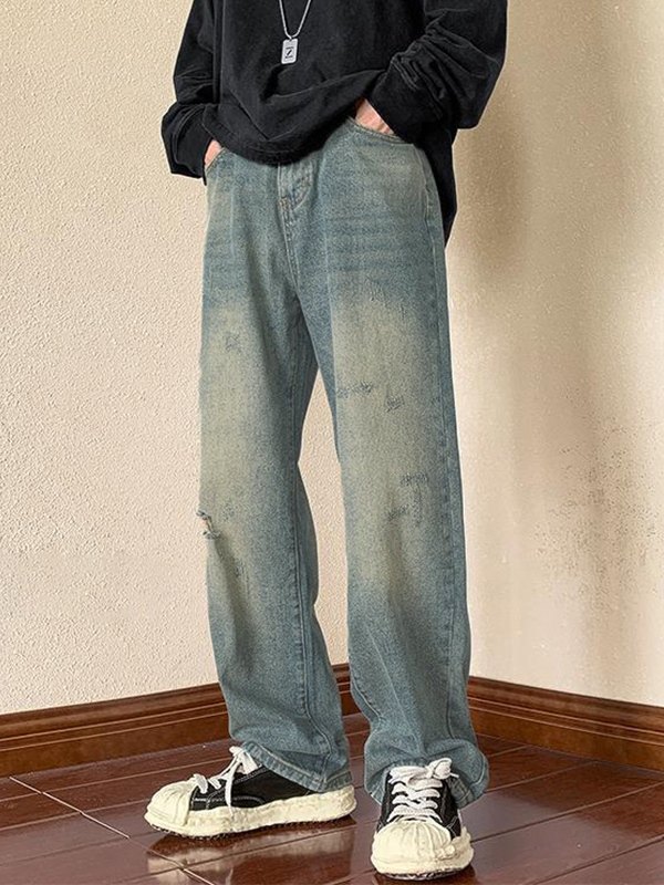 Herren Vintage Distressed Denim Lose Jeans