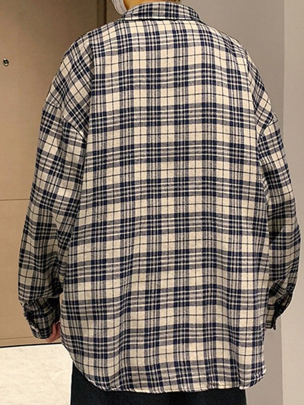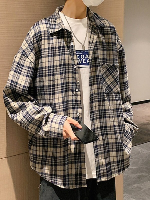 Ärmellänge: Langarm< br />Beschreibung: Inspiriert von einem karierten Vintage-Print, haben diese langärmligen Herrenhemden eine schmeichelhafte Silhouette, überschnittene Schultern, ein Taschendetail vorne und ein Knopfverschluss-Design.