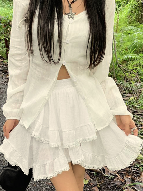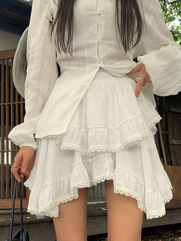 Einzigartiges Design: Der Rock verfügt über ein Spitzen-Patchwork-Design, das ihm einen zarten und femininen Look verleiht. Der unregelmäßige Saum sorgt für eine unverwechselbare und stilvolle Note.