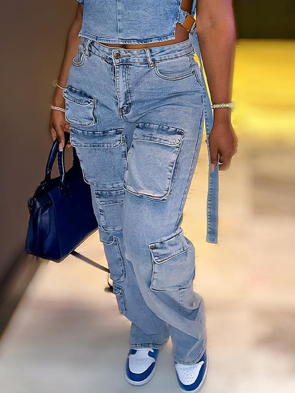 Multi-Bag-Cargojeans im Workwear-Stil mit hoher Elastizität