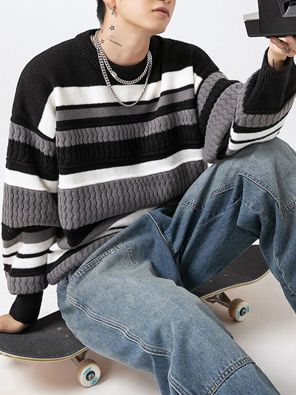 Pullover mit Streifen und Kontrastnähten