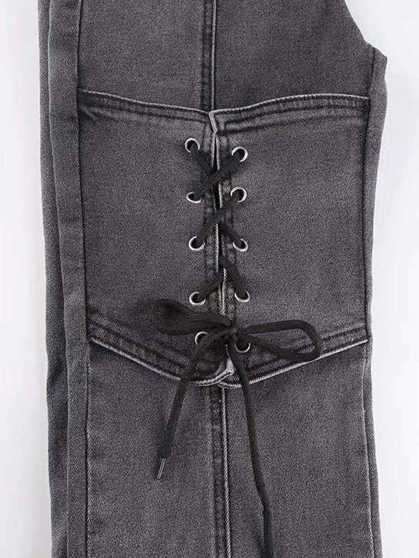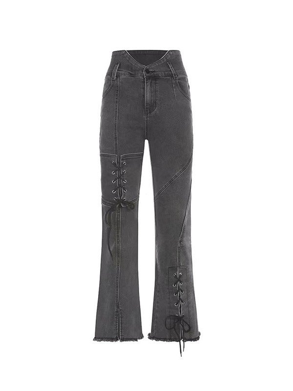 Schreibe die erste Bewertung für „Schnür-Patchwork-Slit-Flare-Jeans“
