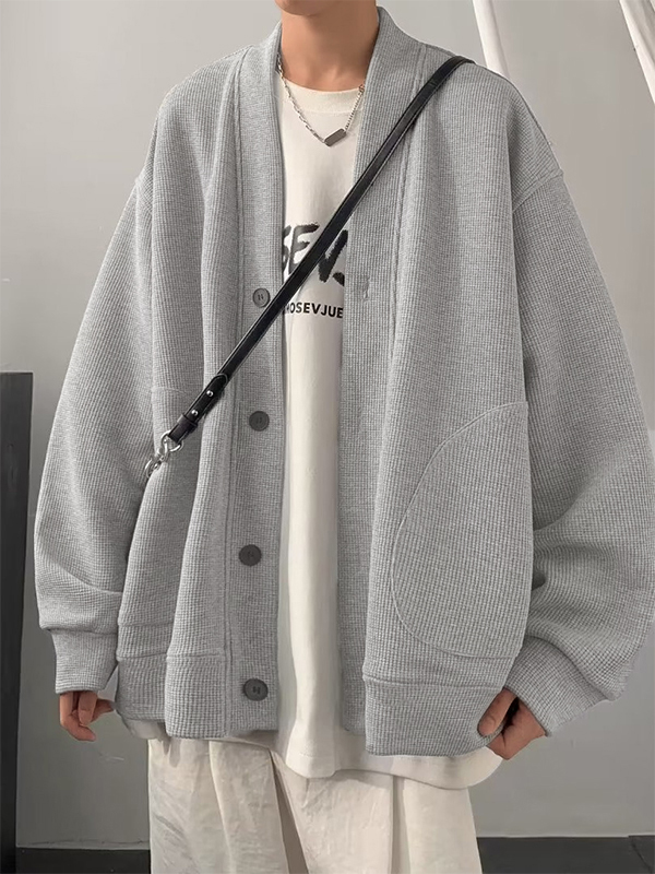 Schreibe die erste Bewertung für „Solide Strickjacke für Herren mit Waffelmuster und V-Ausschnitt“