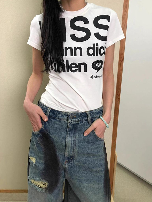 Schreibe die erste Bewertung für „T-Shirt mit kurzen Ärmeln im Retro-Buchstabendruck“