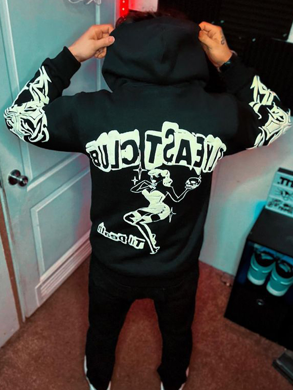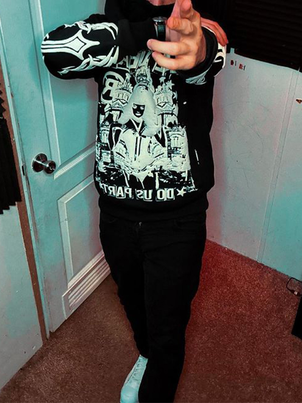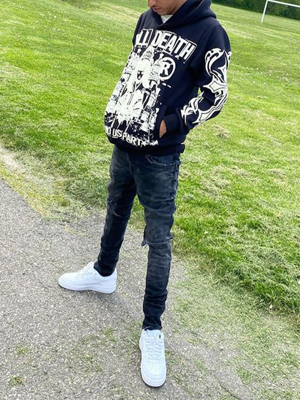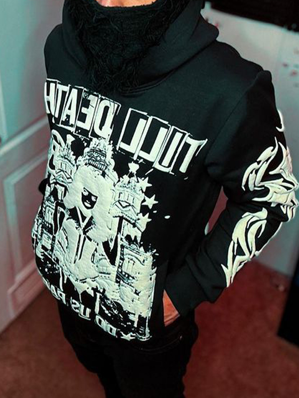 1 Bewertung für Übergroßer Kapuzenpullover mit Kreuzschriftzug und langen Ärmeln für Herren
