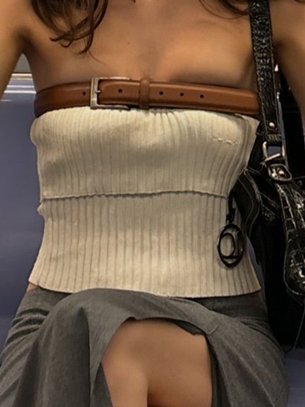 Einfarbig gestreiftes Bustier-Bandeau-Top