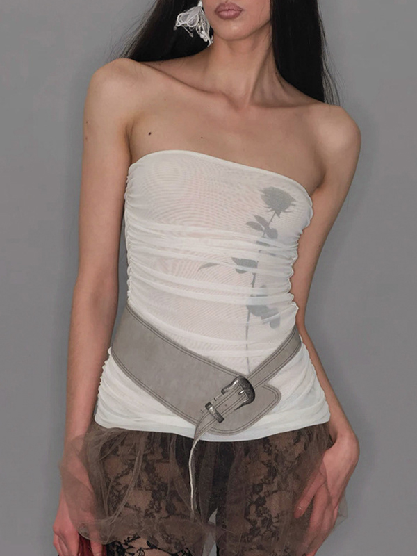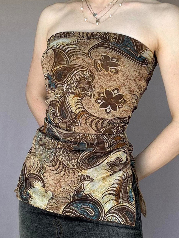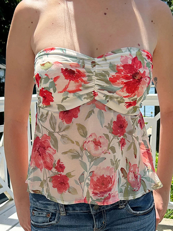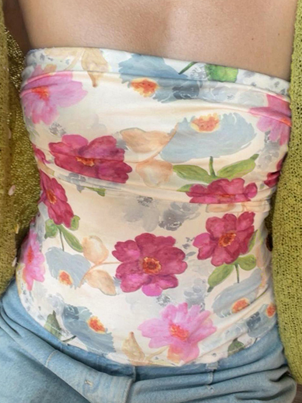 Trägerloses Tanktop mit Blumenmuster und seitlicher Schnürung