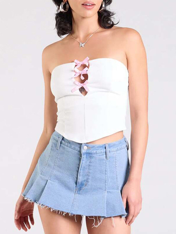 Einfarbiges Bandeau-Top mit Schleife und Hohlsaum