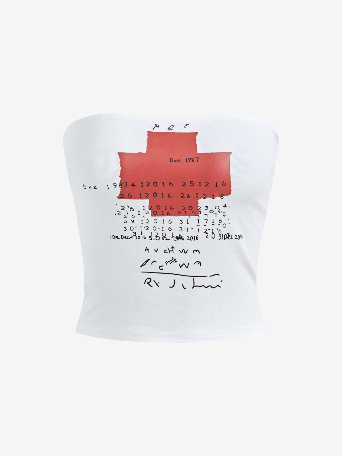 Bandeau-Top mit bedruckten Seitenträgern und Monogramm