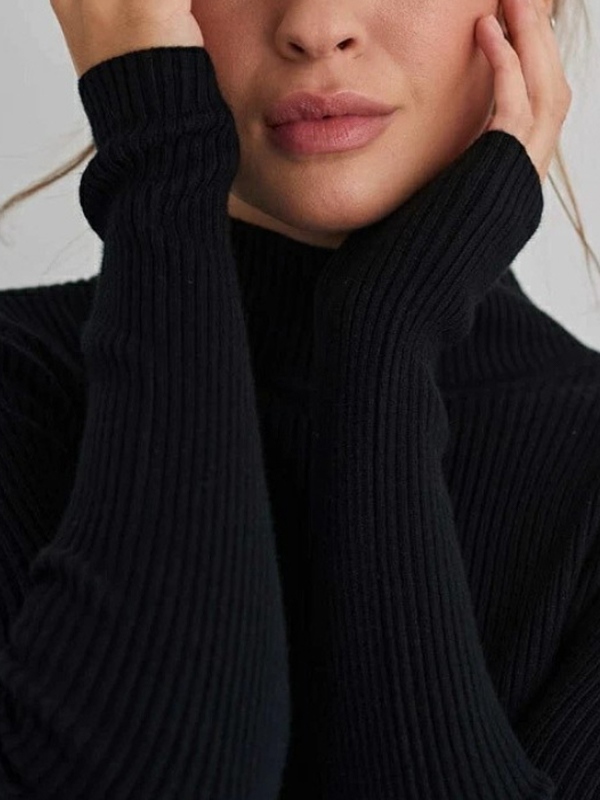 Einfarbiger, schmaler Strickpullover mit Stehkragen