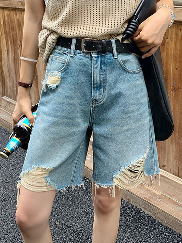Entworfen mit Löchern Jeansshorts