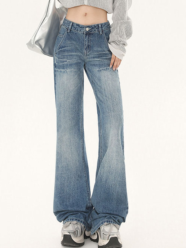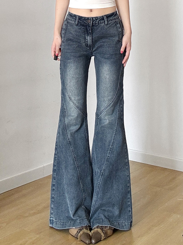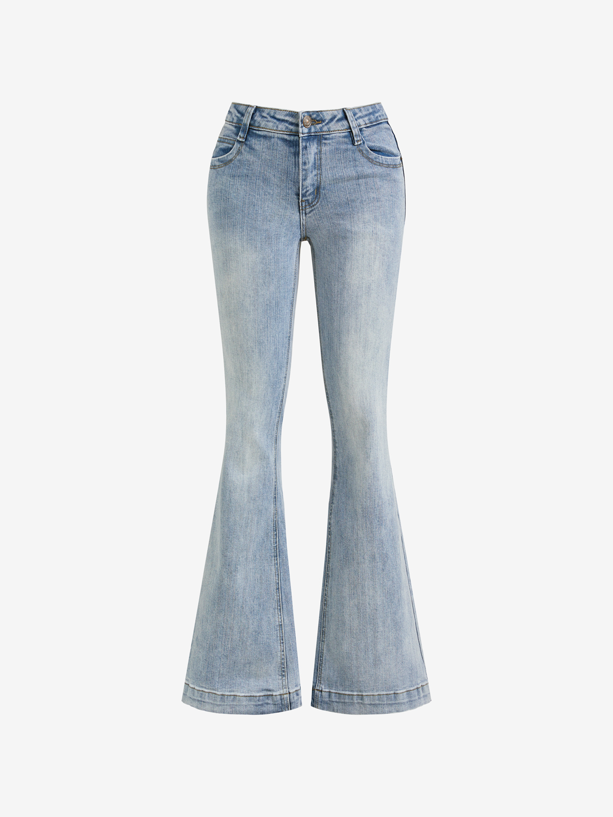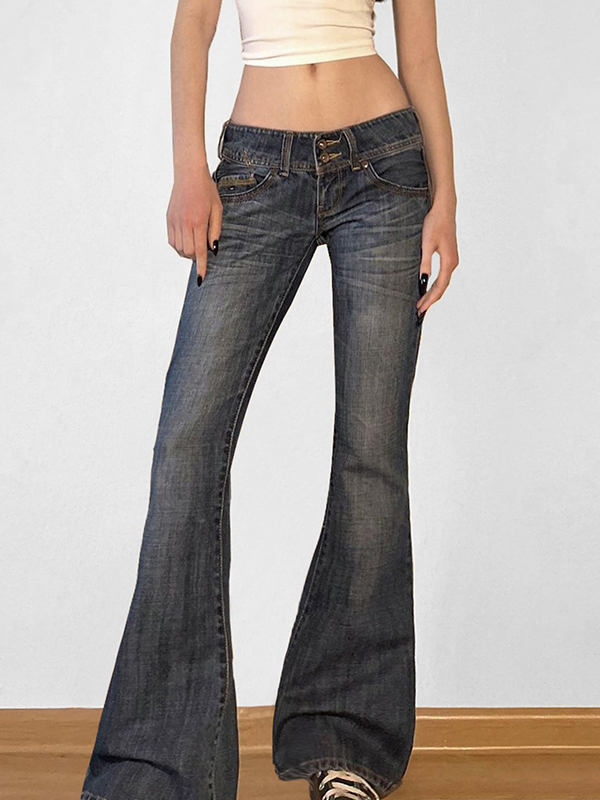 Schlagjeans mit niedriger Taille und verwaschenem Used-Look