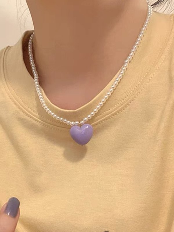 Acryl-Herz-Charme-Faux-Perlen-Halskette