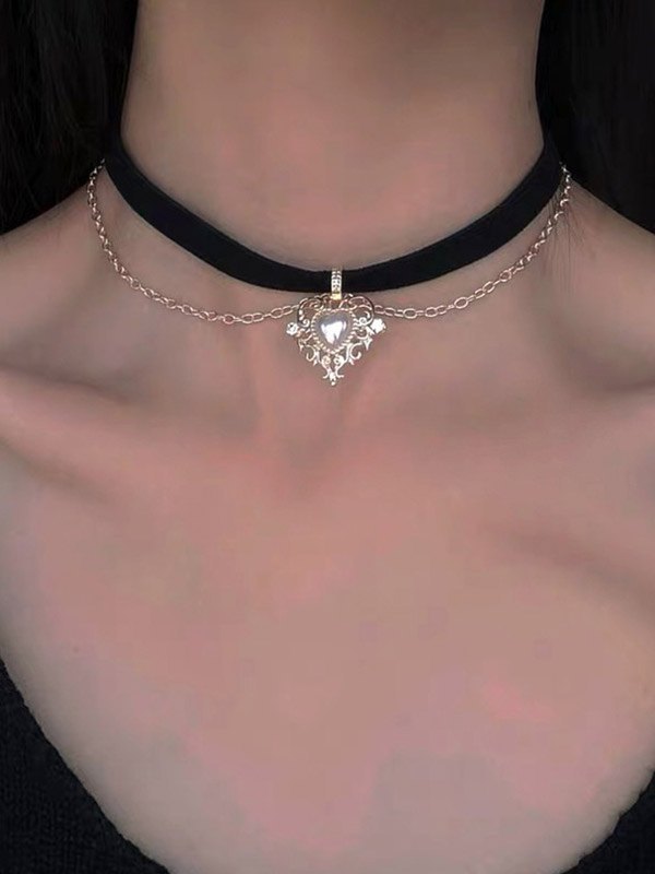 Gotische Herzkette Samt-Halskette