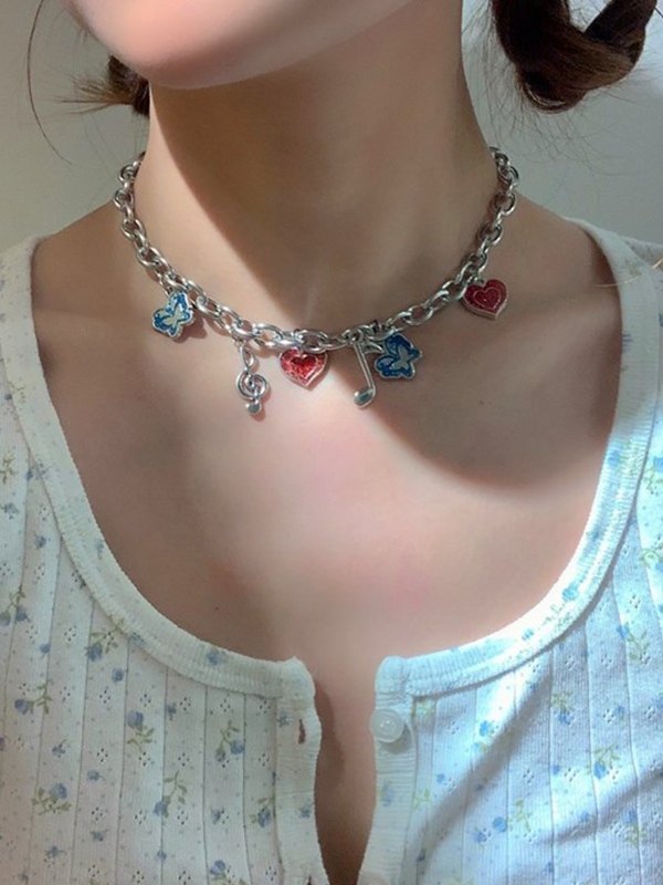 Y2K-Stern-Herz-Anhänger-Halskette