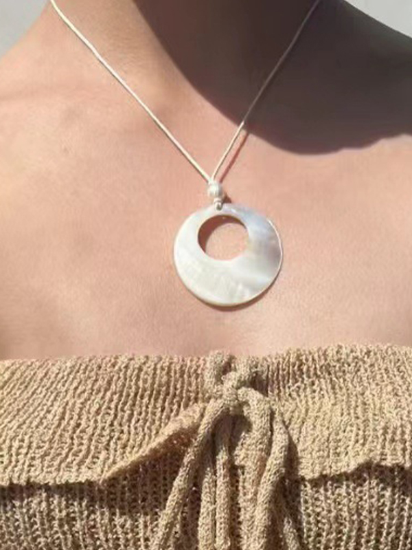Ausgehöhlte Halskette mit rundem Muschelanhänger