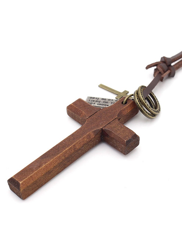 Halskette aus Leder mit Kreuzanhänger aus Holz