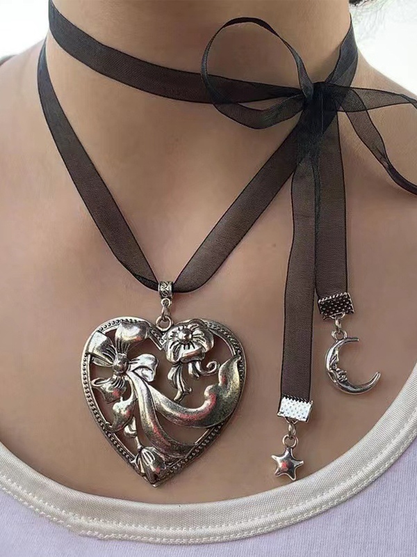 Halskette mit übertriebenem Ausschnitt und großem Herzanhänger