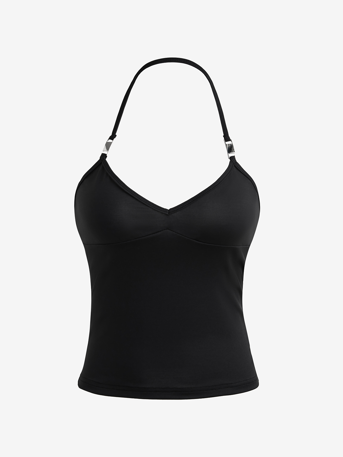 Neckholder-Weste mit V-Ausschnitt und Metallbesatz