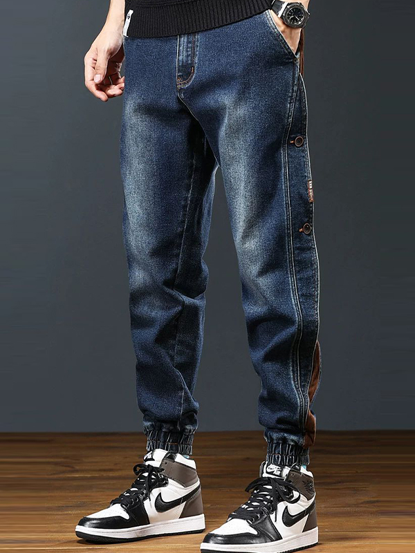 Lockere Jeans im verwaschenen Patchwork-Design