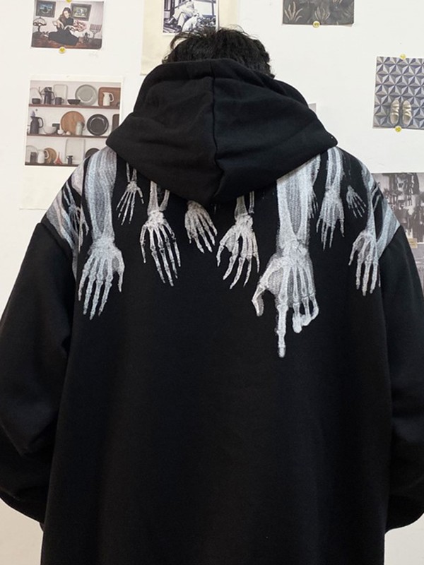 Mit Fleece gefütterter Schädelhand-Hoodie für Herren