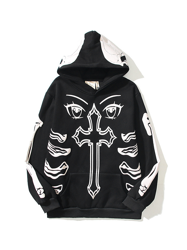 Übergroßer Langarm-Hoodie mit Kreuz-Print für Herren
