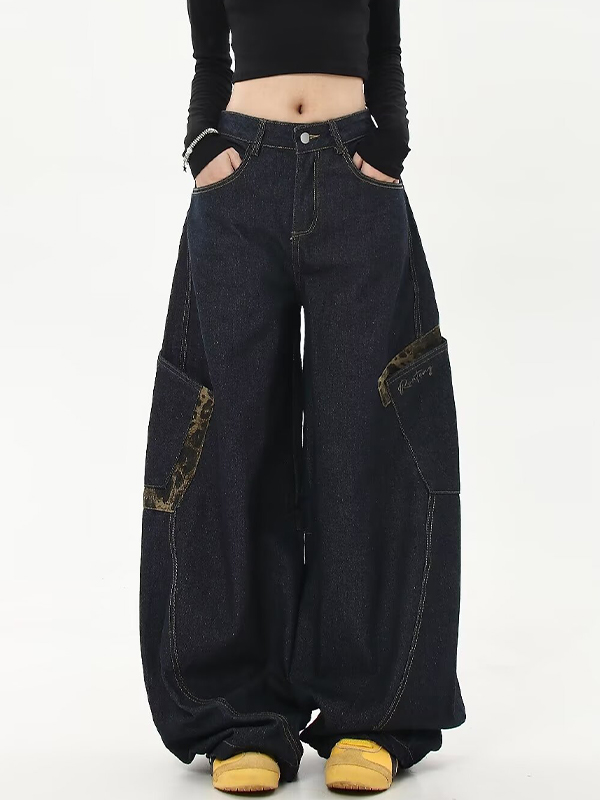 American Retro Boyfriendjeans mit Leopardenmuster und Nähten