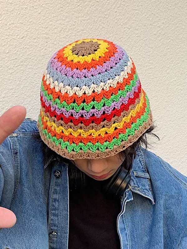 Handgefertigte gestreifte Strickmütze mit Horndetail