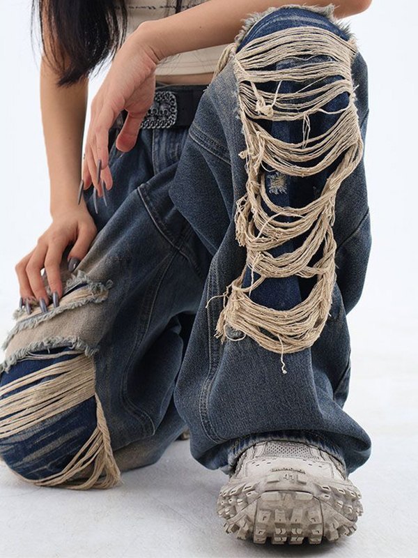 Zerrissene Nischenjeans im Retro-Distressed-Patch-Design
