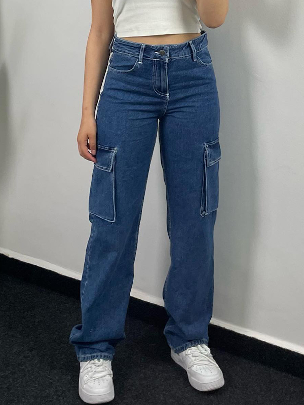 Gerade geschnittene Cargo-Jeans mit weitem Bein