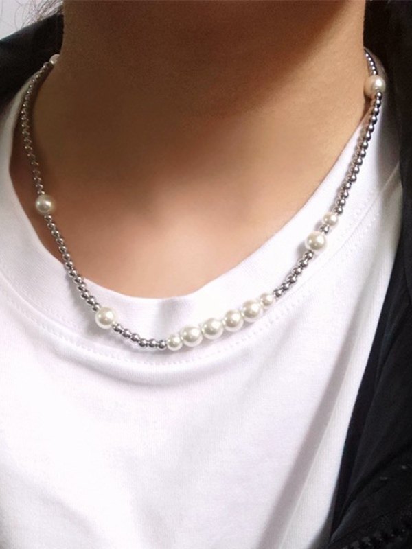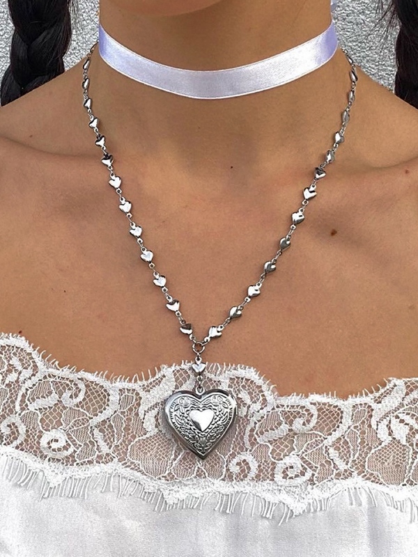 Acryl-Herz-Charme-Faux-Perlen-Halskette