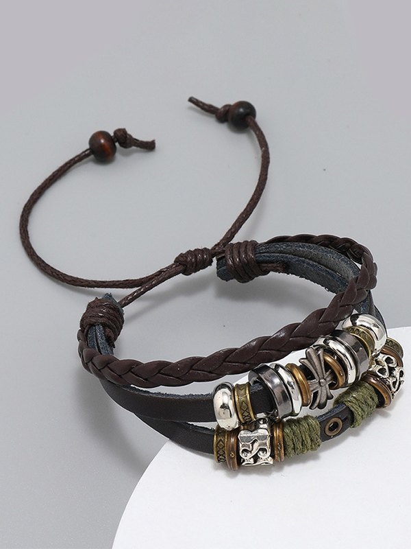 Mehrschichtiges Metallstern-PU-Lederarmband