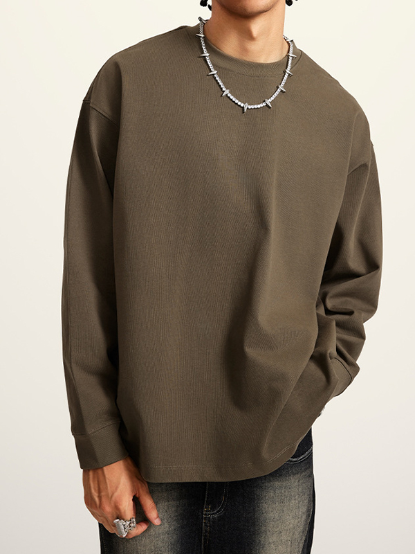 Herren-Langarm-T-Shirt im Vintage-Look, gewaschen, einfarbig