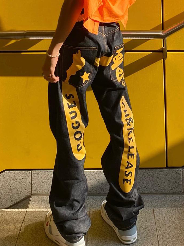 Lockere Jeans für Herren mit Totenkopf-Buchstaben-Print