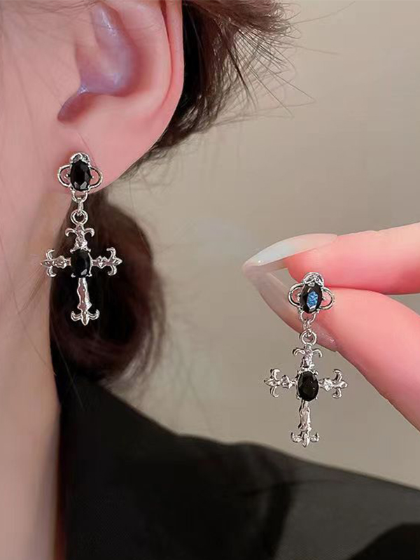 Glänzender Ohrstecker mit Kreuzanhänger