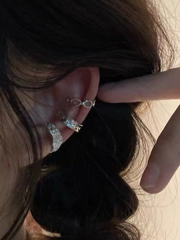 3-teiliges konkaves Silber-Ohrmanschetten-Set