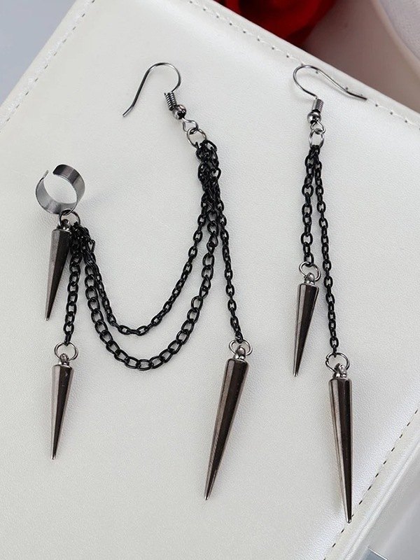 Punk-Quasten-Kettenniet-Anhänger-Ohrringe