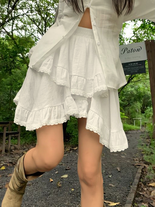 Minirock mit Spitzen-Patchwork und unregelmäßigem Saum