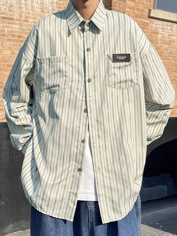 Verzierte Langarmbluse mit Streifenetikett für Herren