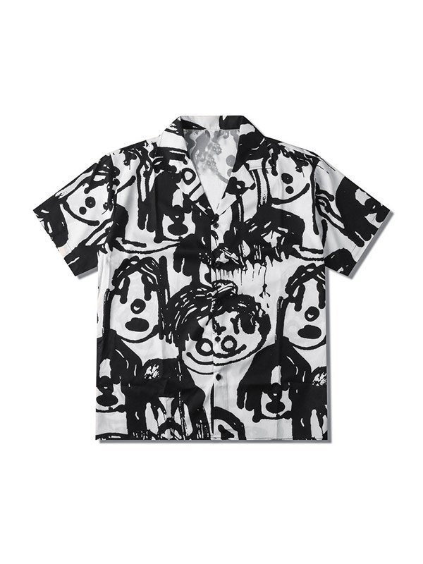 Button-Down-Hemd mit Cartoon-Graffiti-Print für Herren