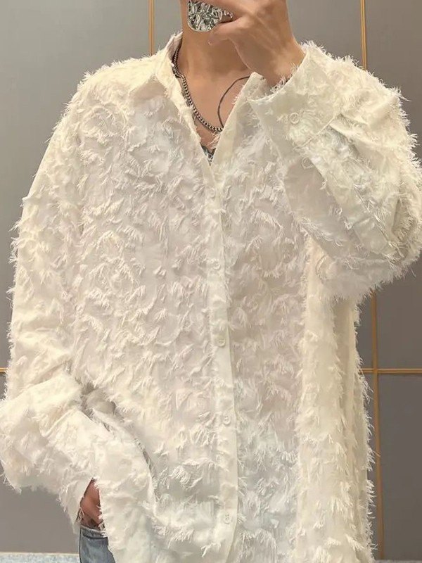 Fuzzy Langarm-Button-Down-Hemd für Herren