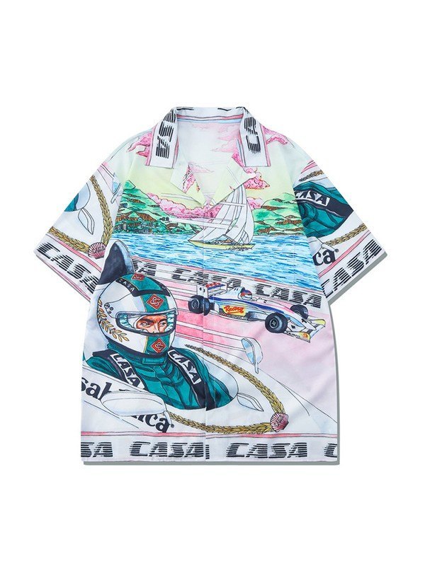 Kurzärmliges Button-Down-Hemd mit Vintage-Print für Herren