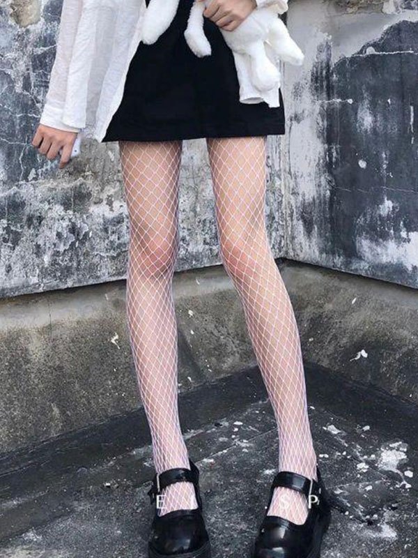 Lange Socken mit Schleifenmuster und Mesh-Einsätzen
