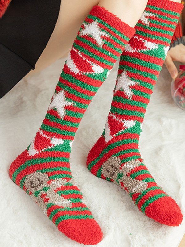 Farbblock gestreifte, mit Fleece gefütterte Socken